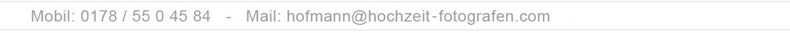 Weitere Erinnerungsstücke können wir für Sie auf Anfrage anfertigen. Unsere Bilder entstehen ausschließlich mit hochwertiger und professioneller Ausrüstung, wir speichern jedes Bild doppelt in der Kamera und nutzen stets 2 Kameras, damit nichts verloren geht. Wir garantieren Ihnen, dass keine weiteren Kosten auf Sie zukommen. Für alle Bilder erhalten Sie private Nutzungsrechte, d.h. Sie dürfen privat kopieren und entwickeln, so oft und so lange Sie möchten. Selbstverständlich können Sie bei uns alle Medien in exzellenter Qualität nachbestellen. Wir wünschen Ihnen, dass Sie Ihr gemeinsames Glück finden.